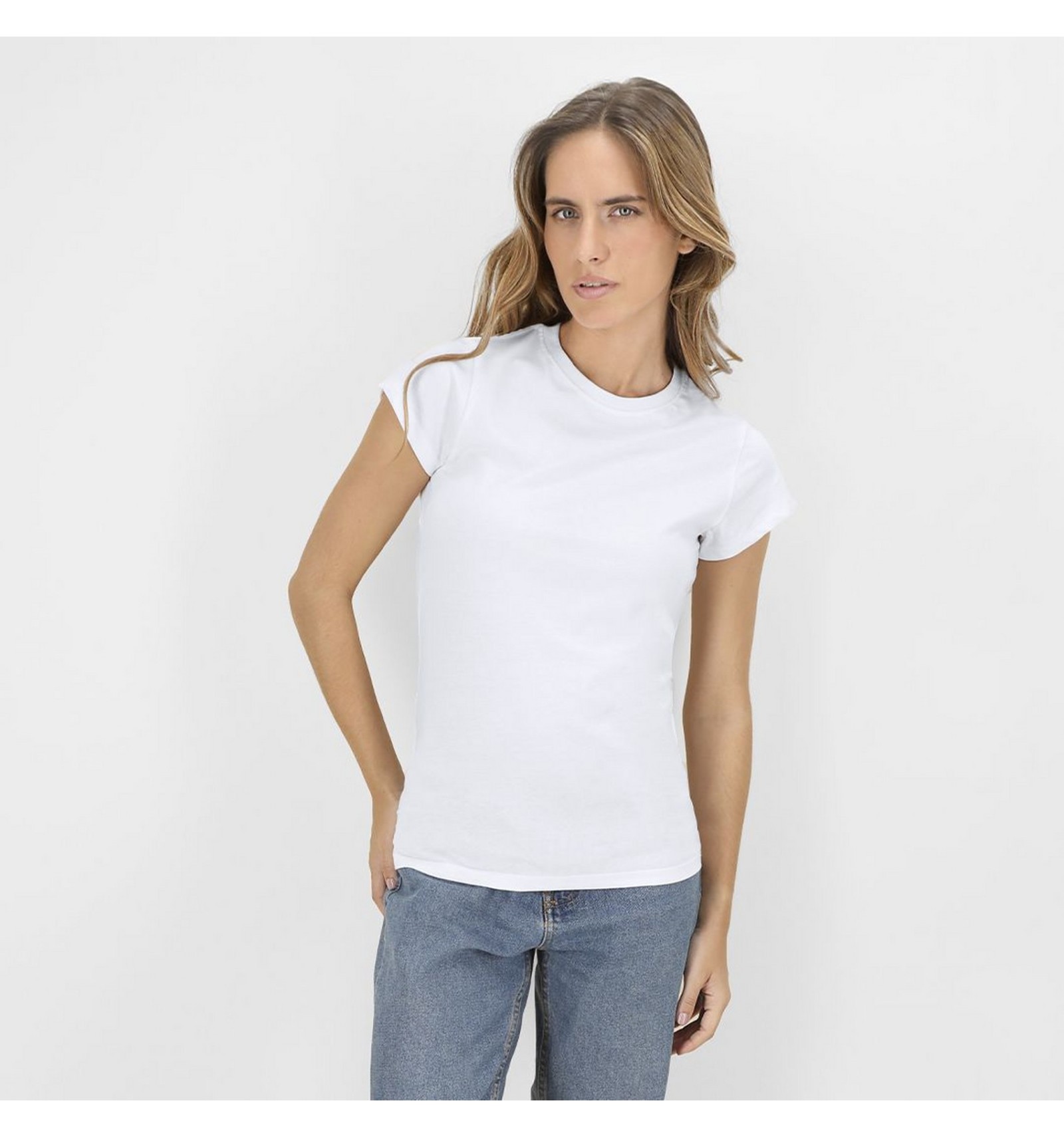 Tricou de damă. Confecționat din material tricotat fin, 100% bumbac, model Single Jersey de 160 g/m².