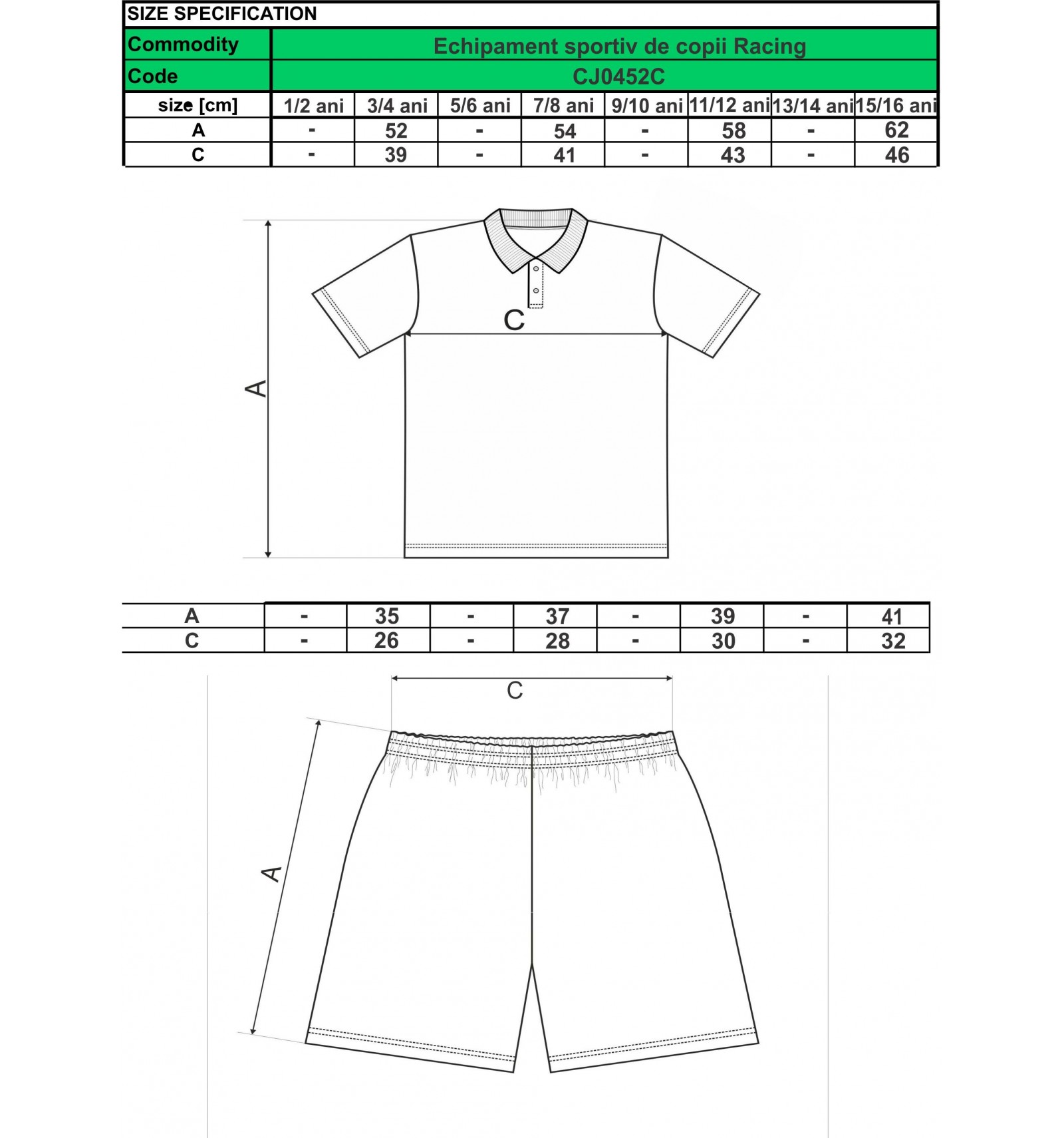 Echipament sportiv unisex compus din 2 tricouri + 1 short.