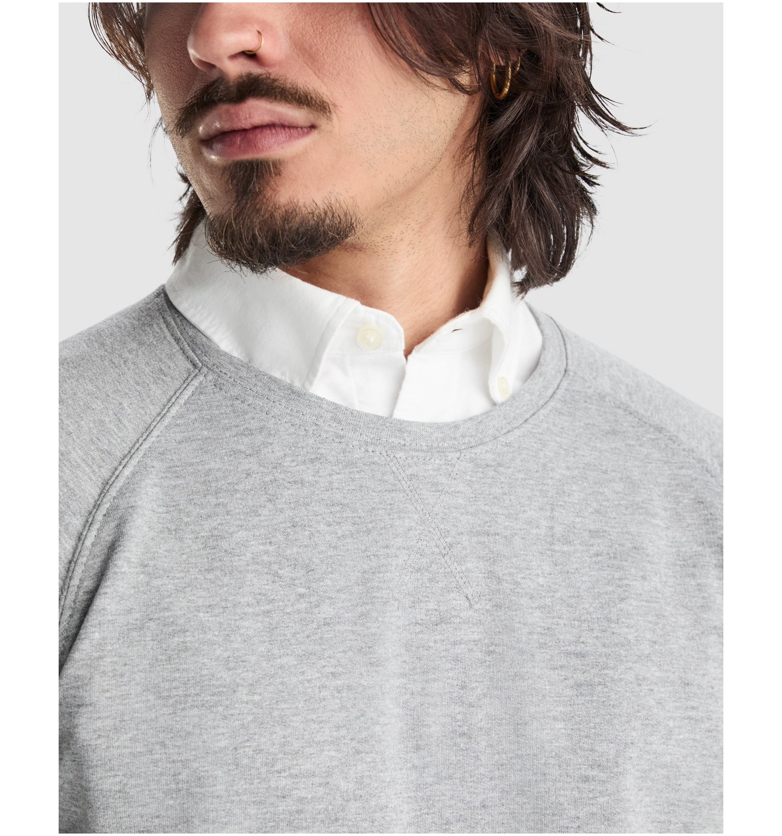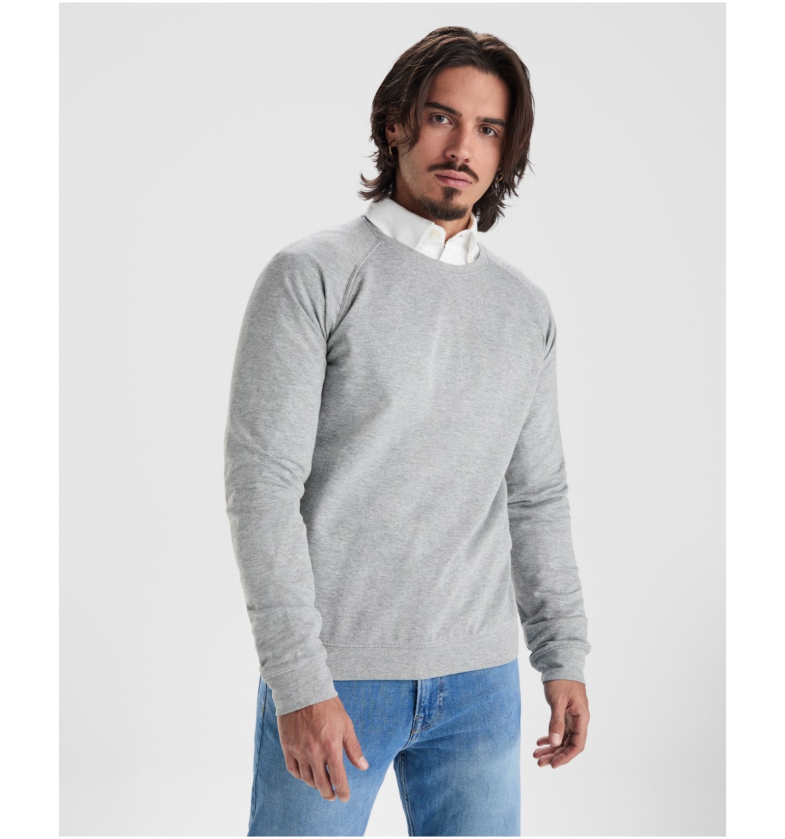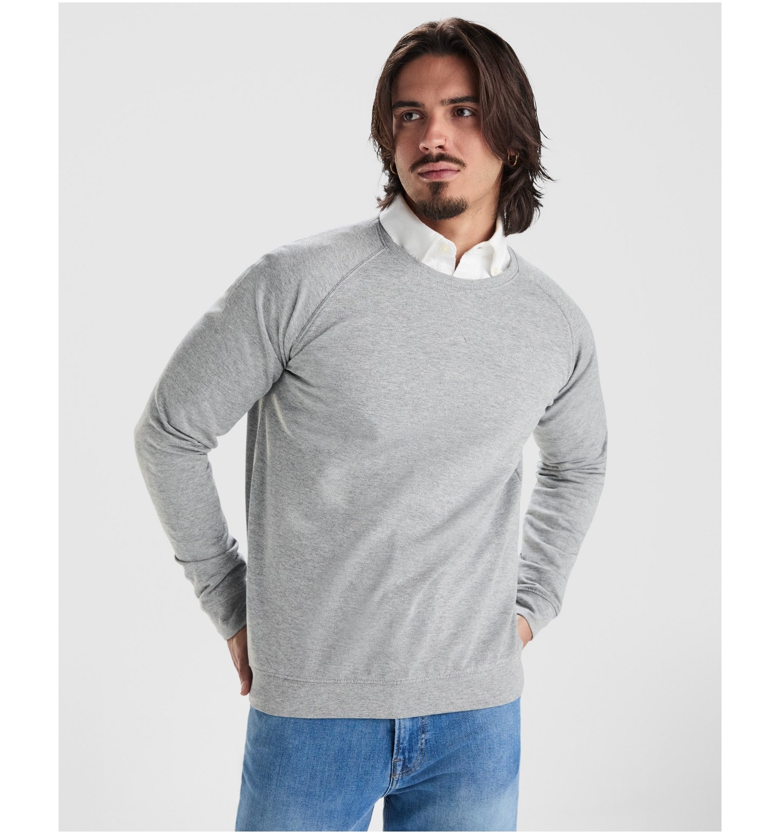 Hanorac unisex cu guler rotund, din bumbac neperiat. Mânecă Raglan. Guler, manșete și betelie cu nervuri 2x1, cu elastan.