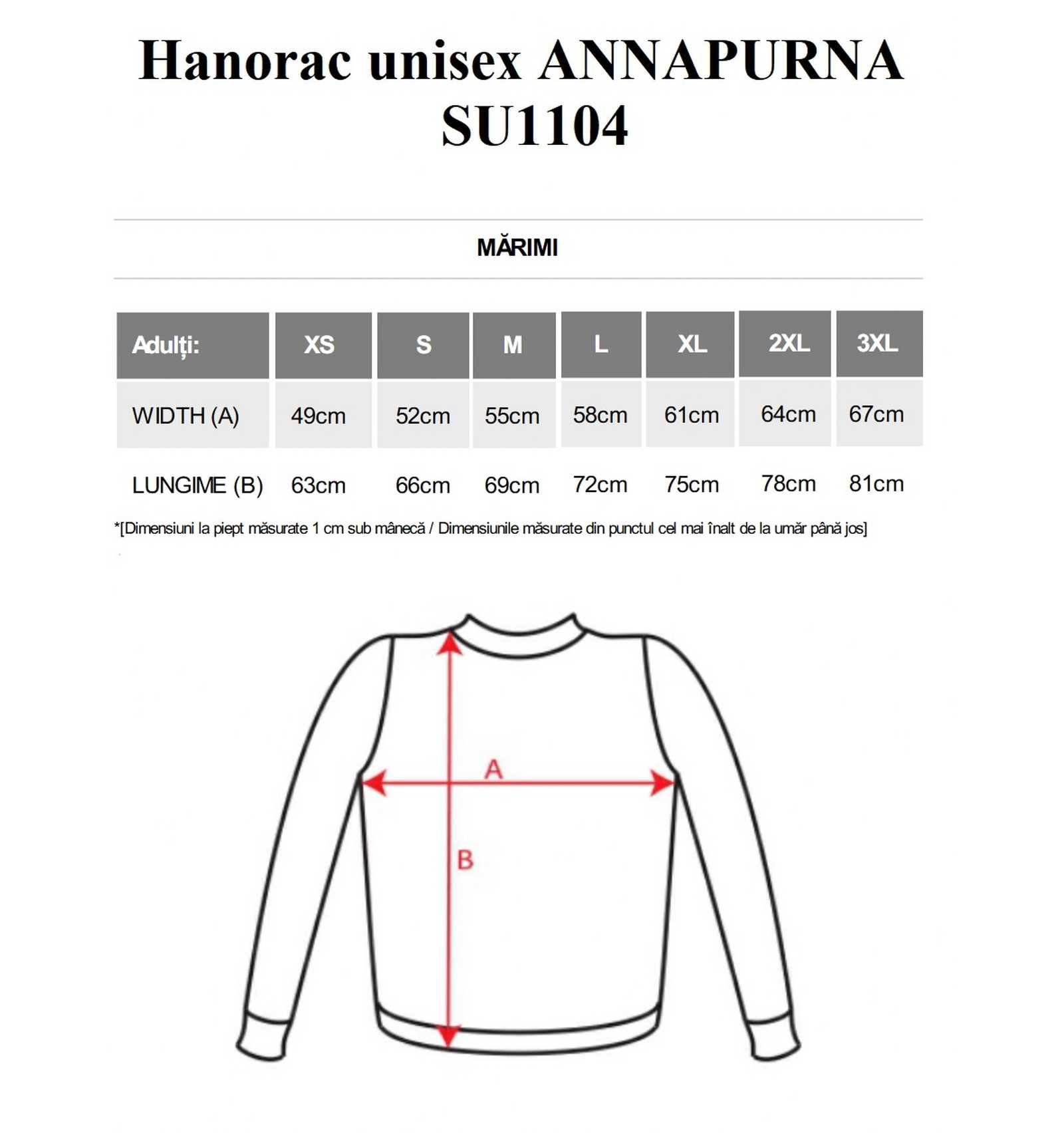 Adulți: XS, S, M, L, XL, XXL, 3XL