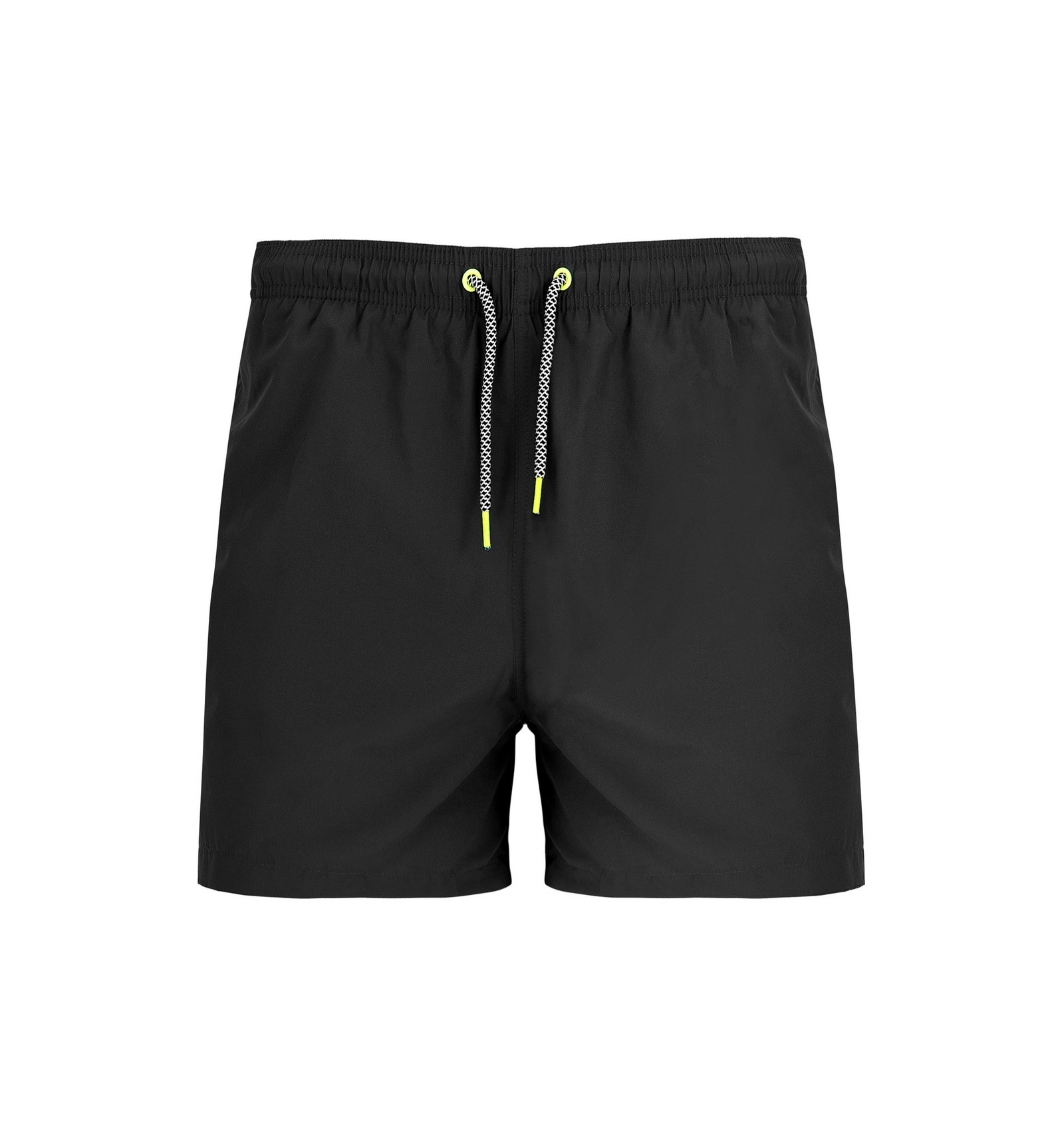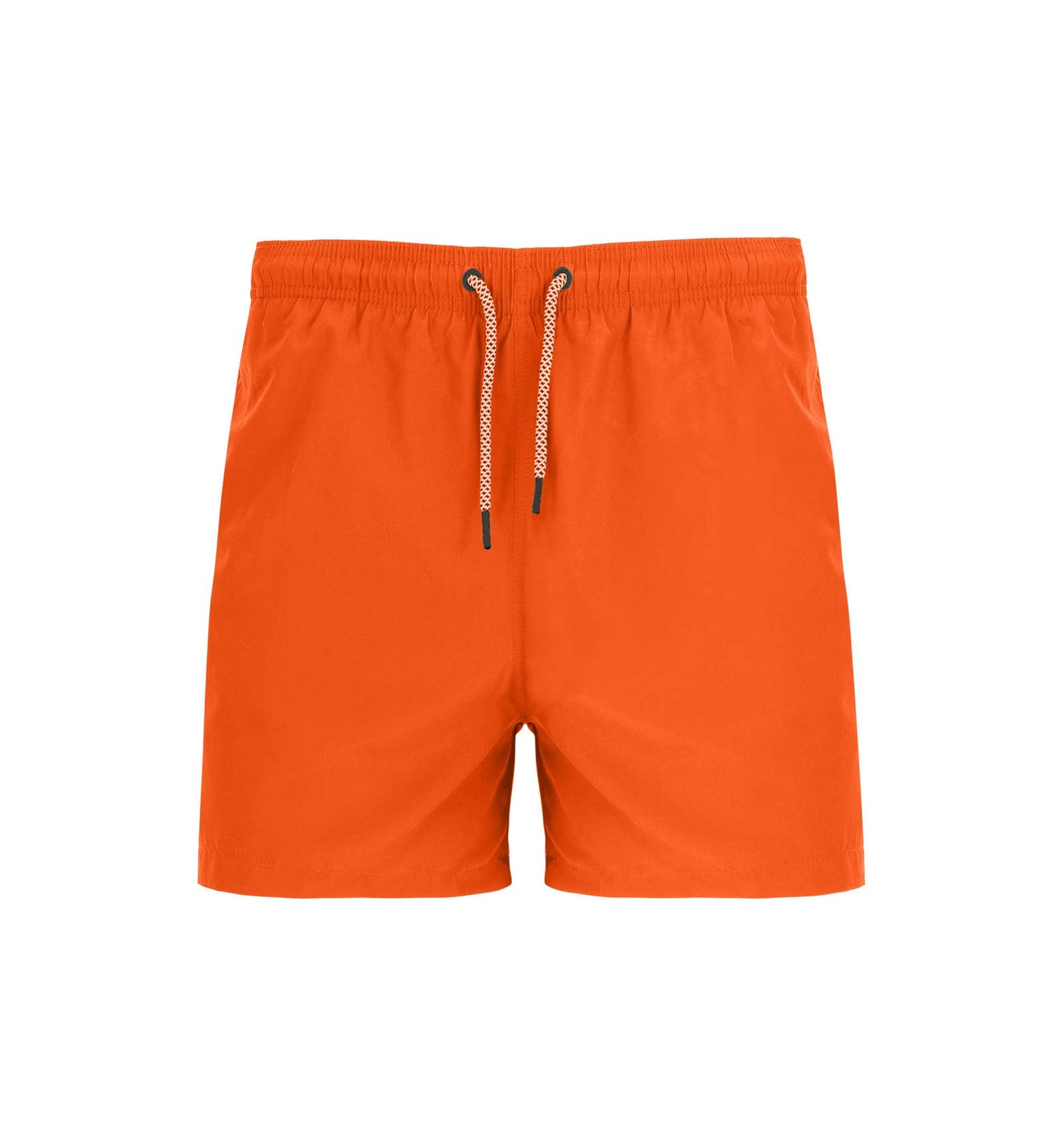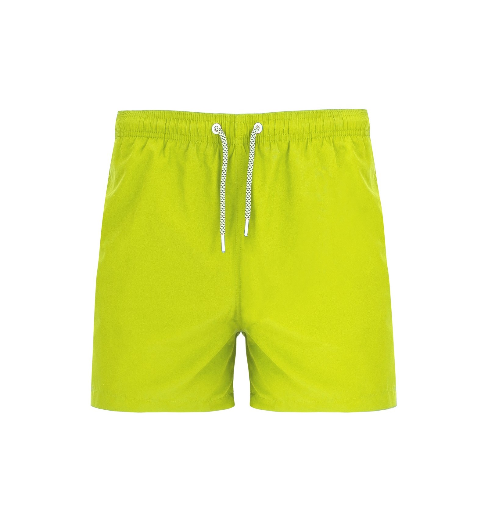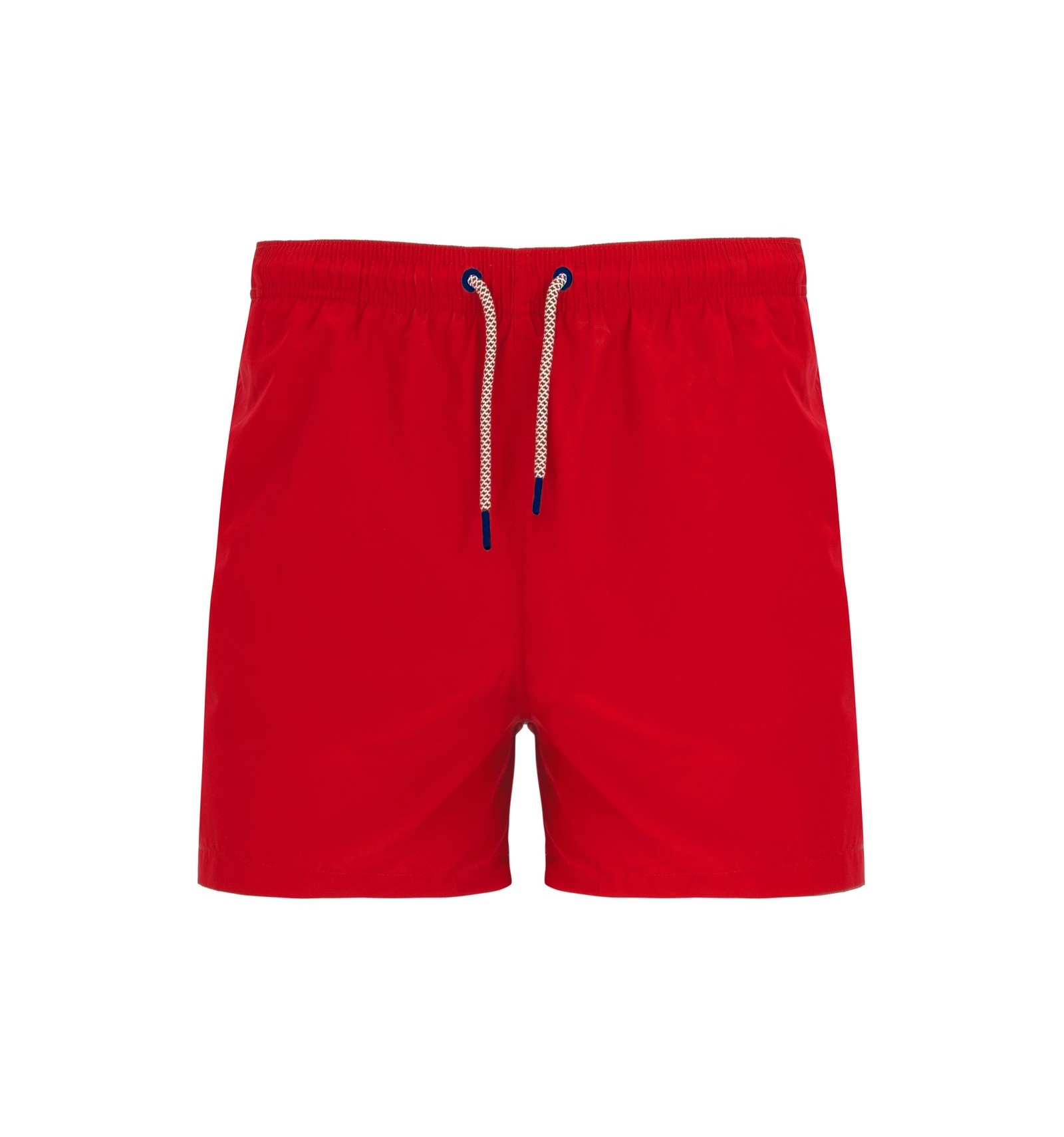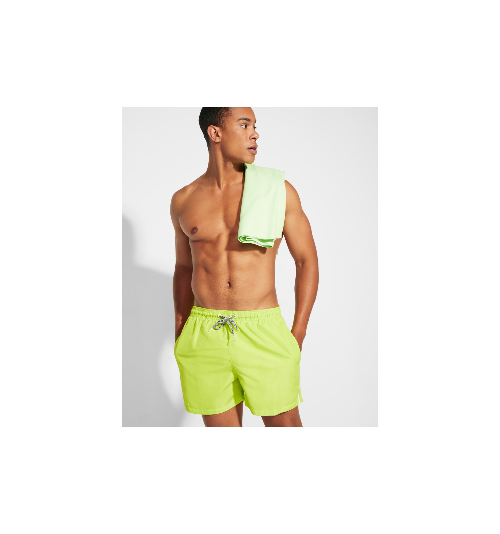 Bermude pentru plajă cu două buzunare laterale. Talie elastică cu șnur decorativ reglabil și butoniere metalice în contrast de culoare. Pe lateral refileți în contrast de culoare. Buzunar la spate cu butonieră pentru scurgerea apei.