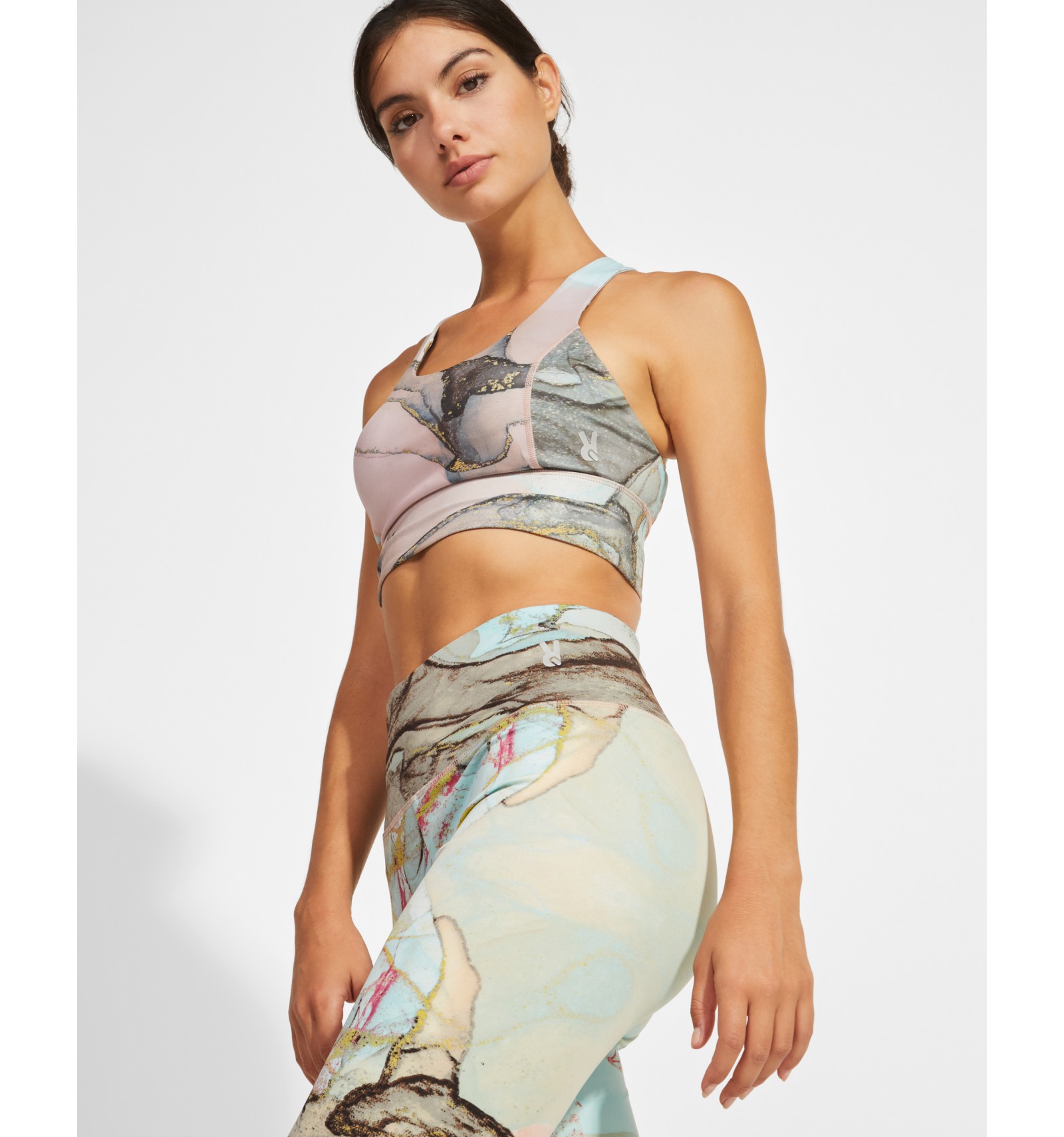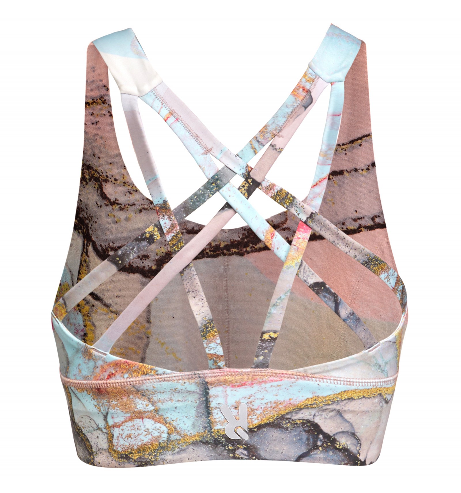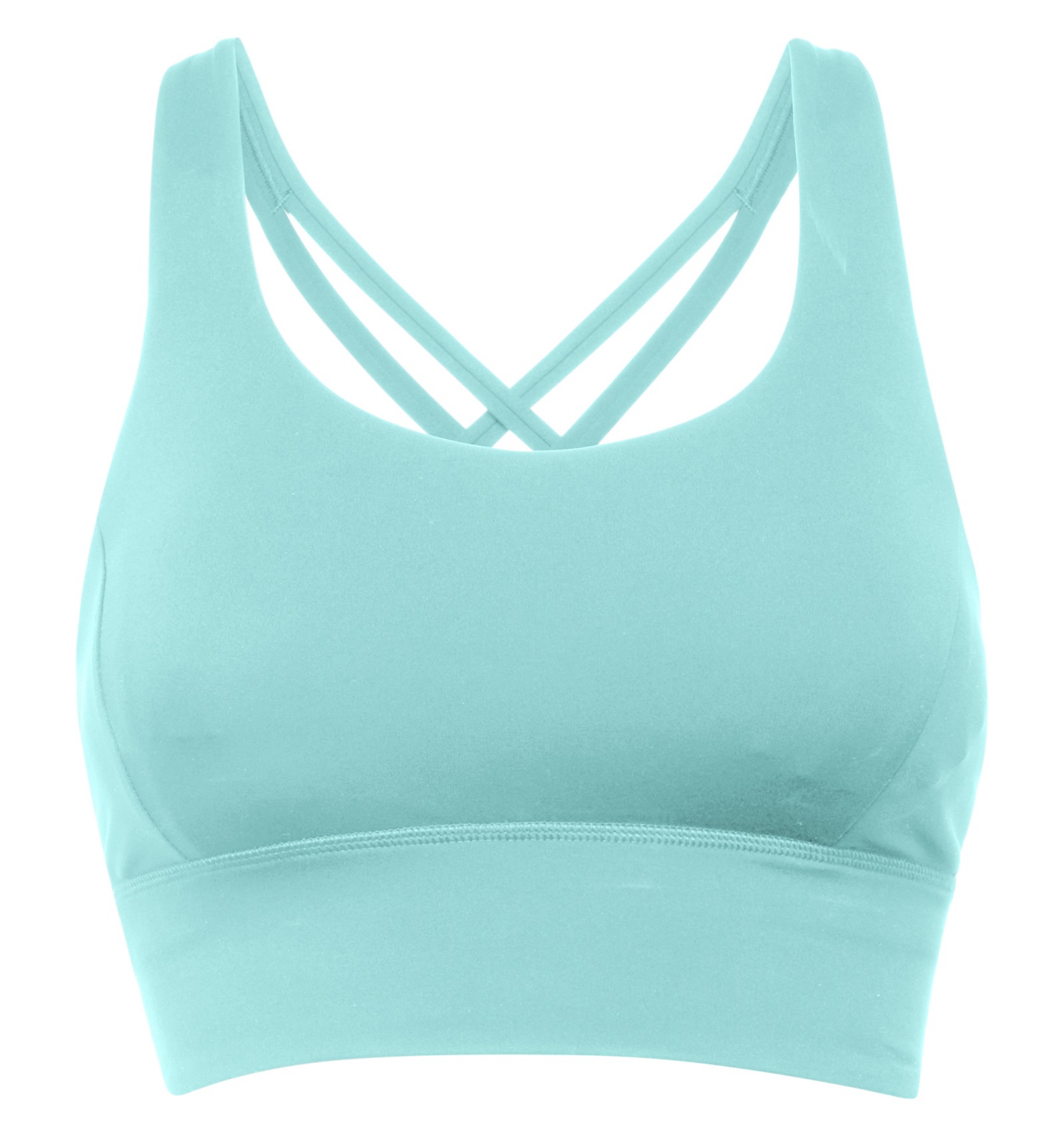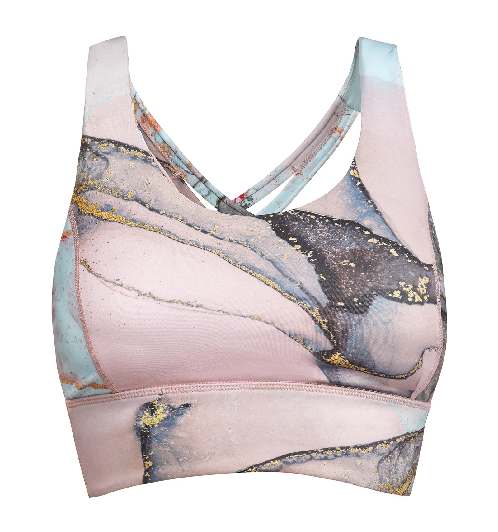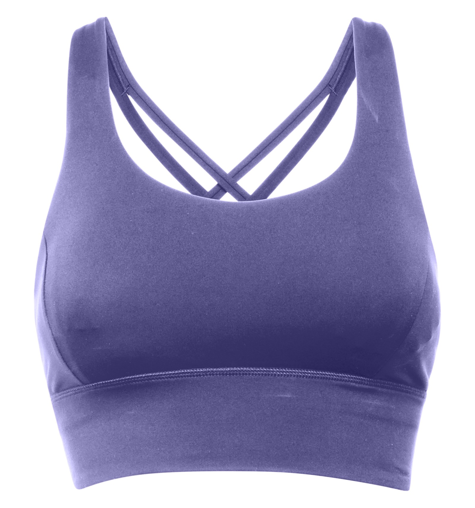 Top sport cu susținere ridicata a bustului. Curele Racerback. Bandă elastică întărită sub bust. Țesătură și căptușeală duble. Cupe din spumă detașabile.