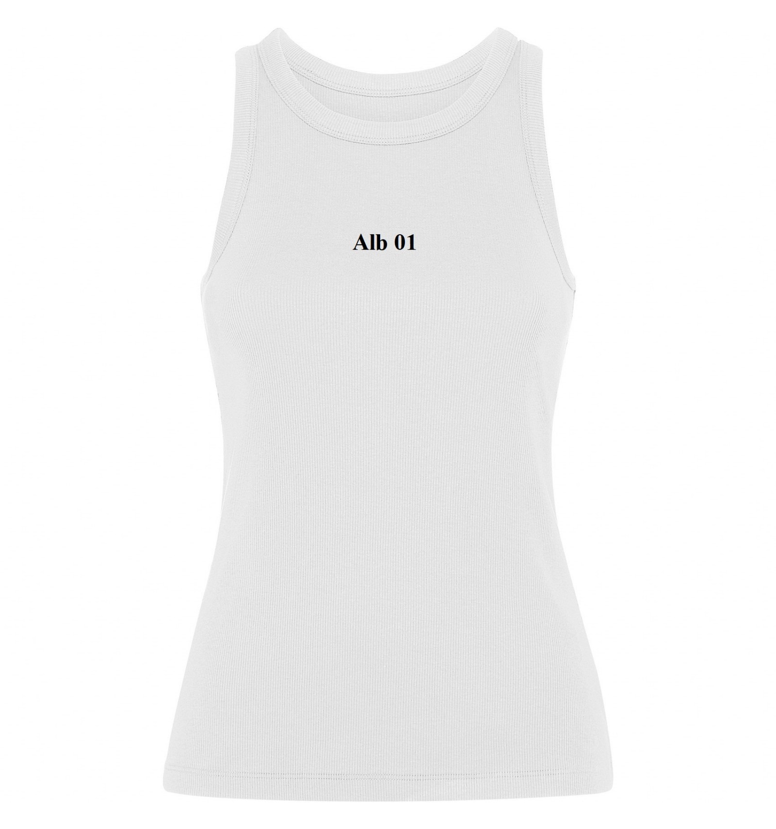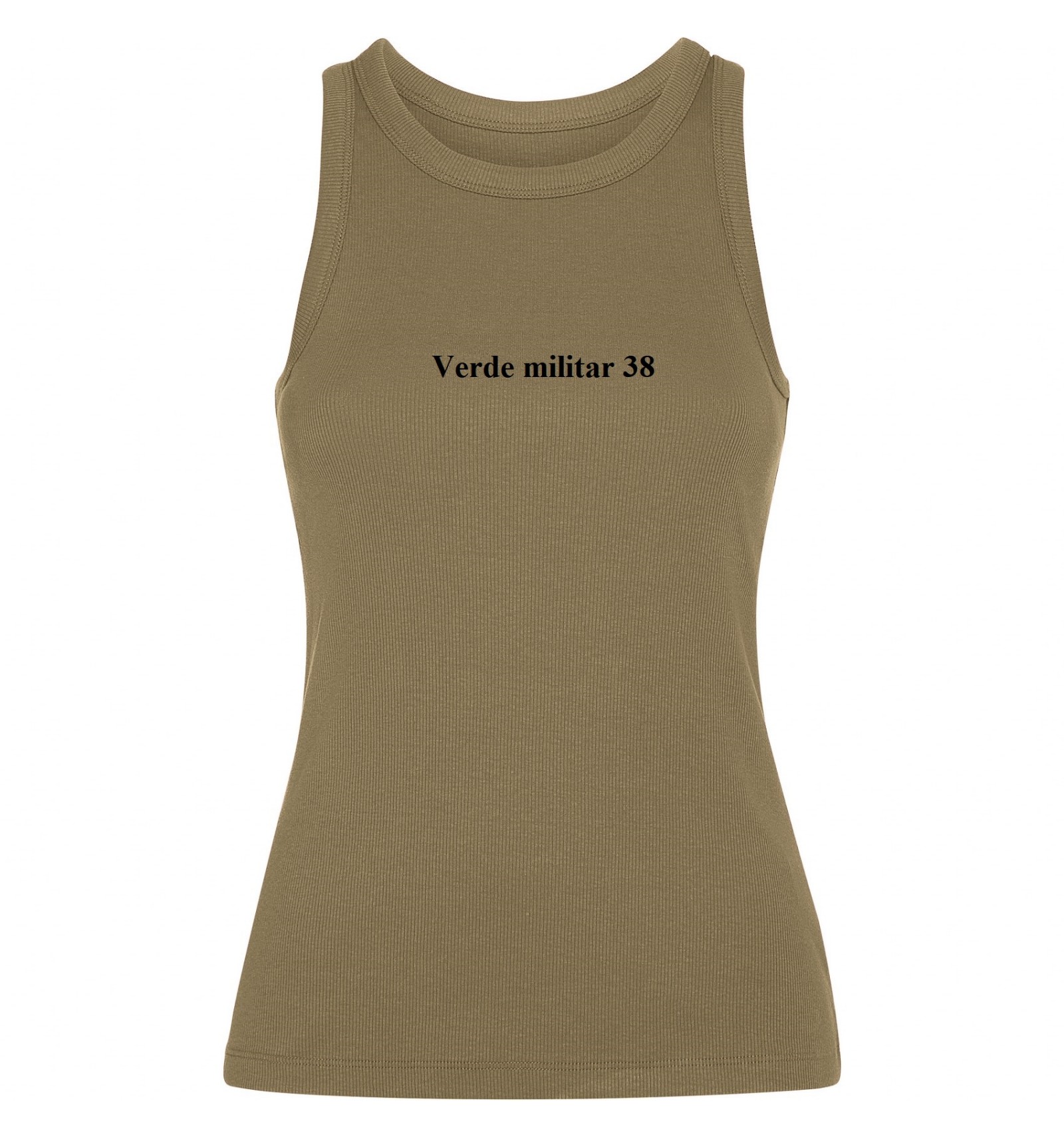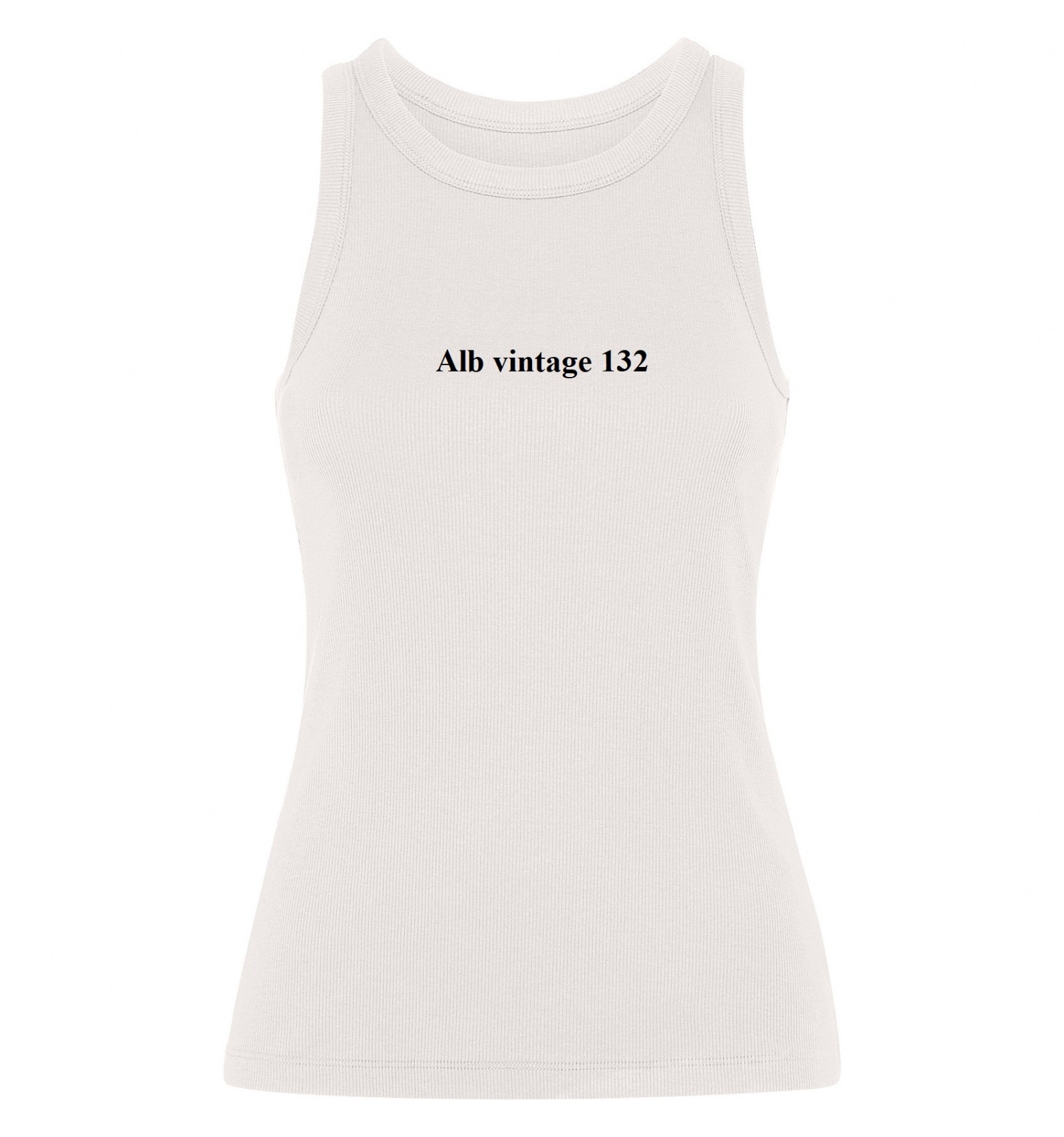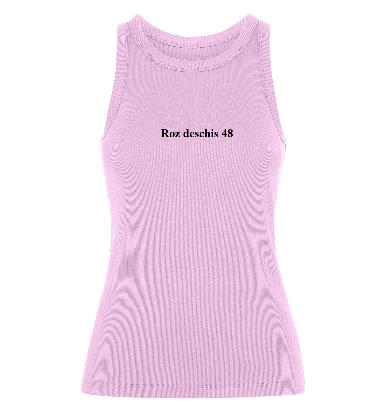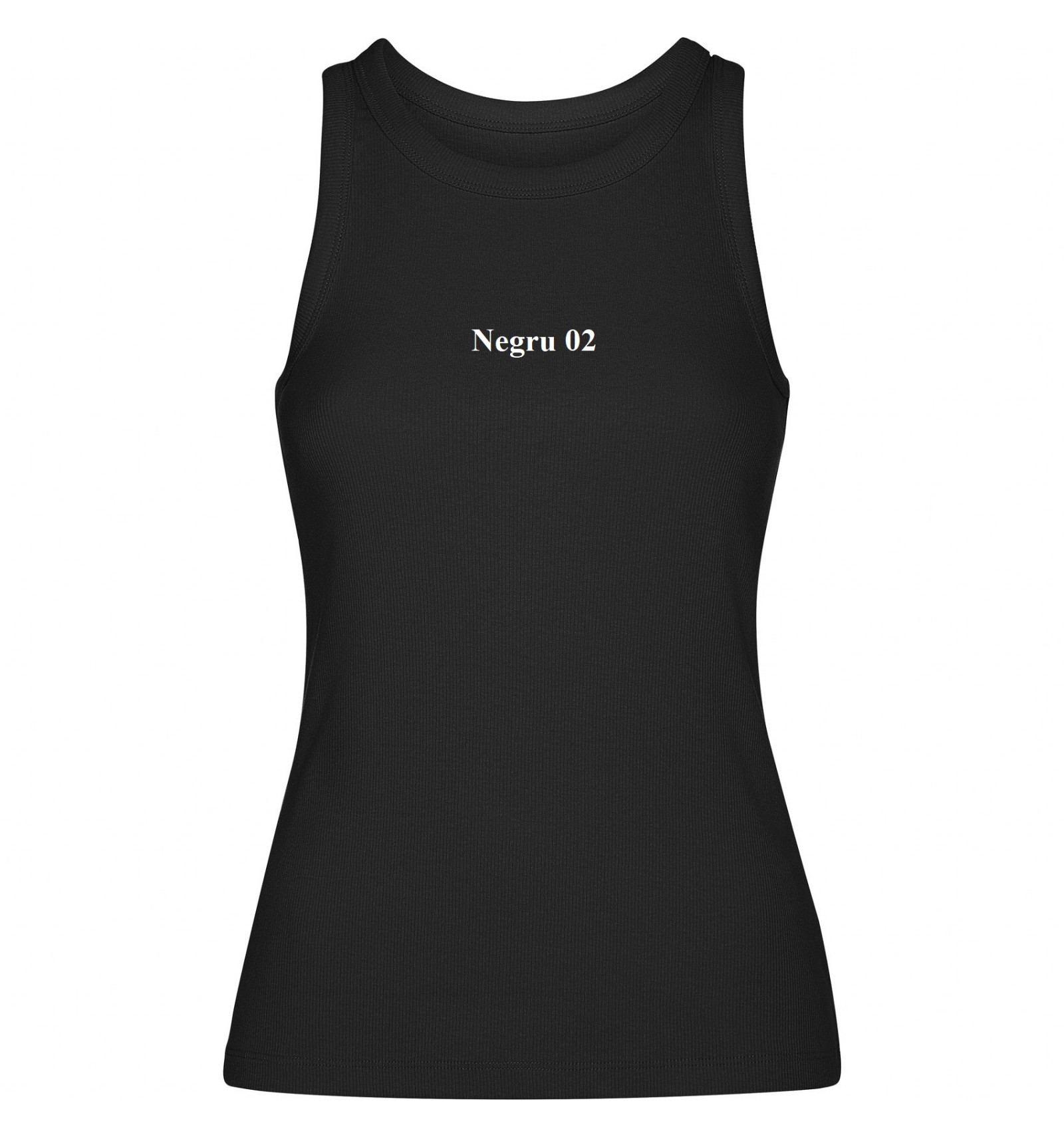 Maiou tricotat cambrat cu nervuri. Guler lat și zonă brațe din același material și întărite cu două cusături. Tiv dublu cusut.
