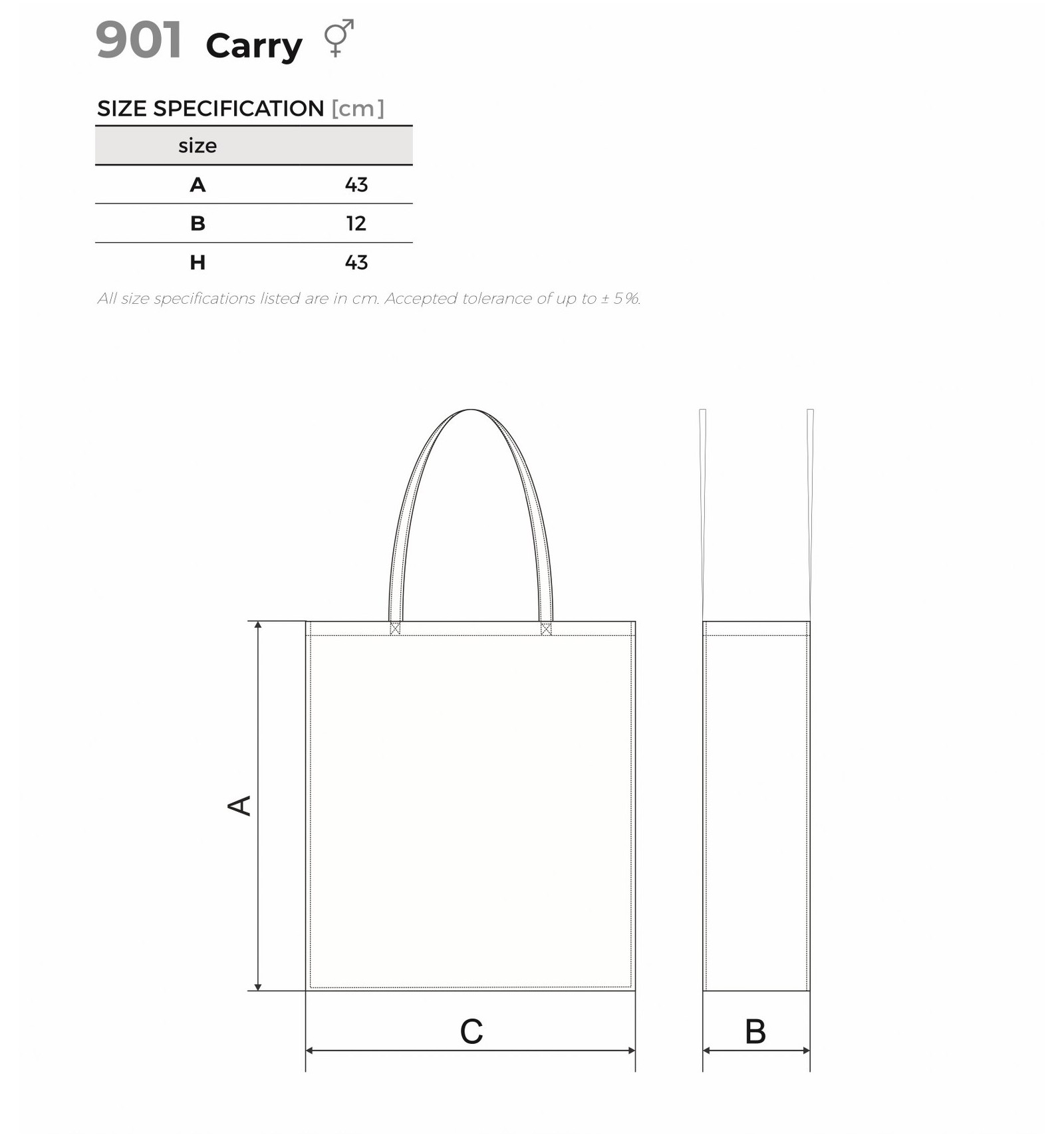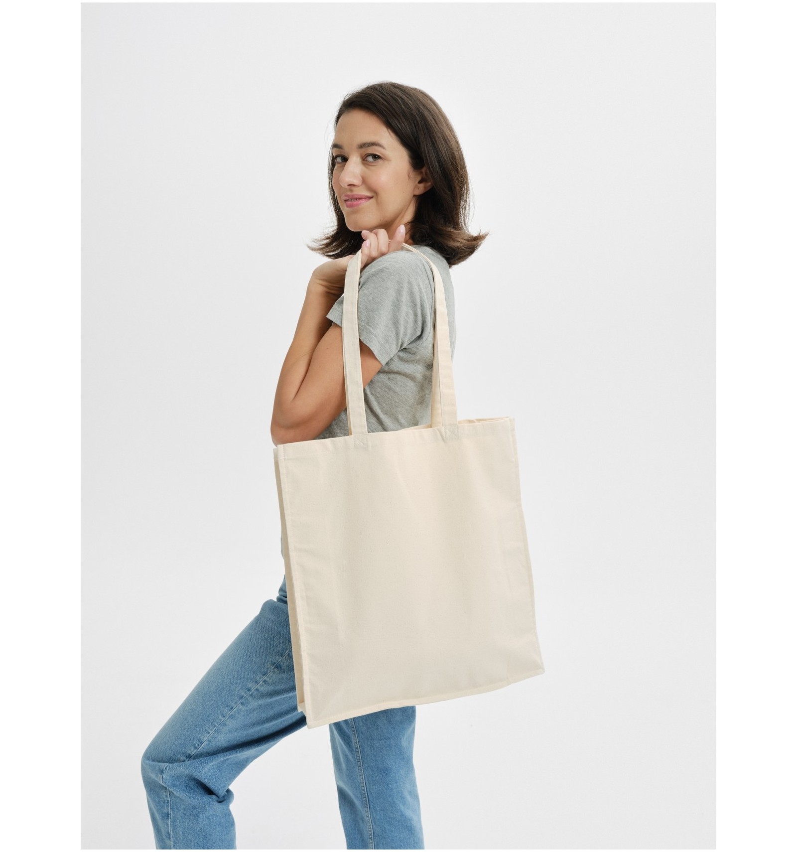 Sacoşă din pânză cu dimensiunile 43 x 43 x 12 cm cu două mânere 70 x 2,5 cm, indicată şi pentru greutăţi mai mari, recomandată pentru imprimare şi brodare.