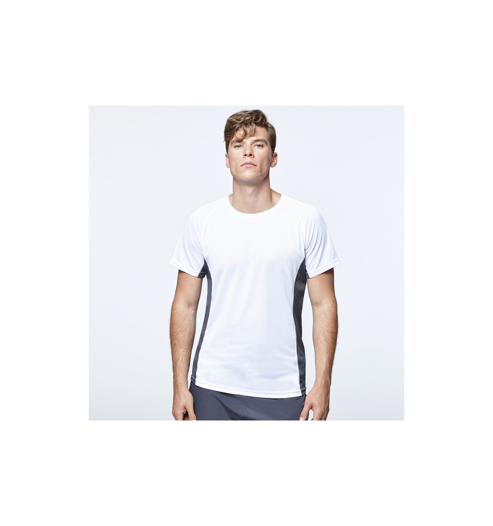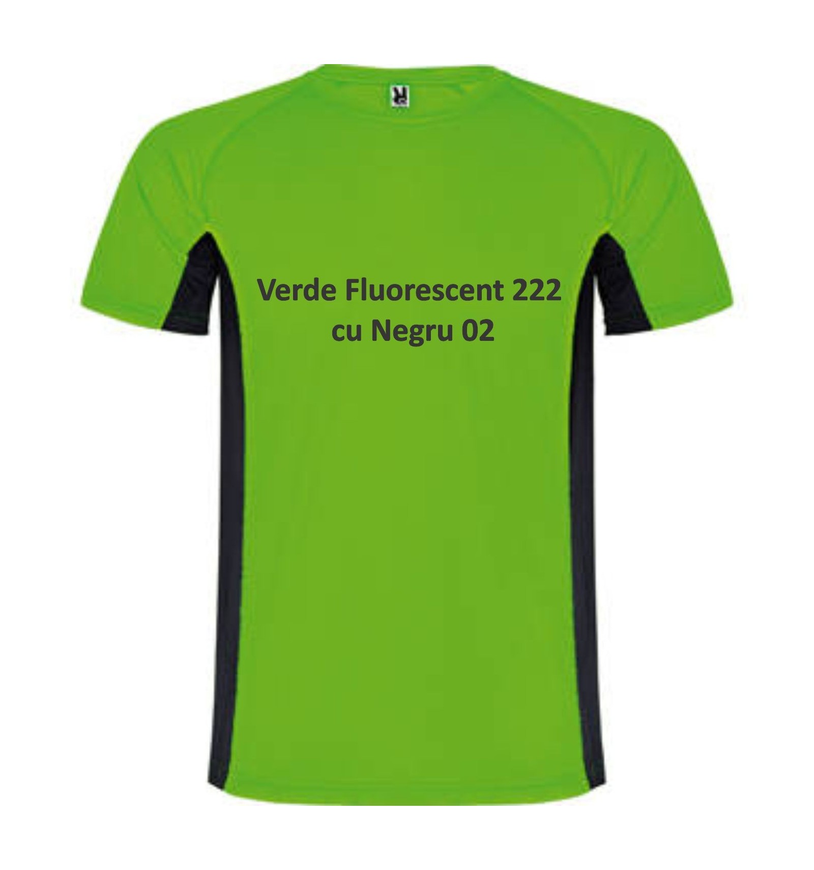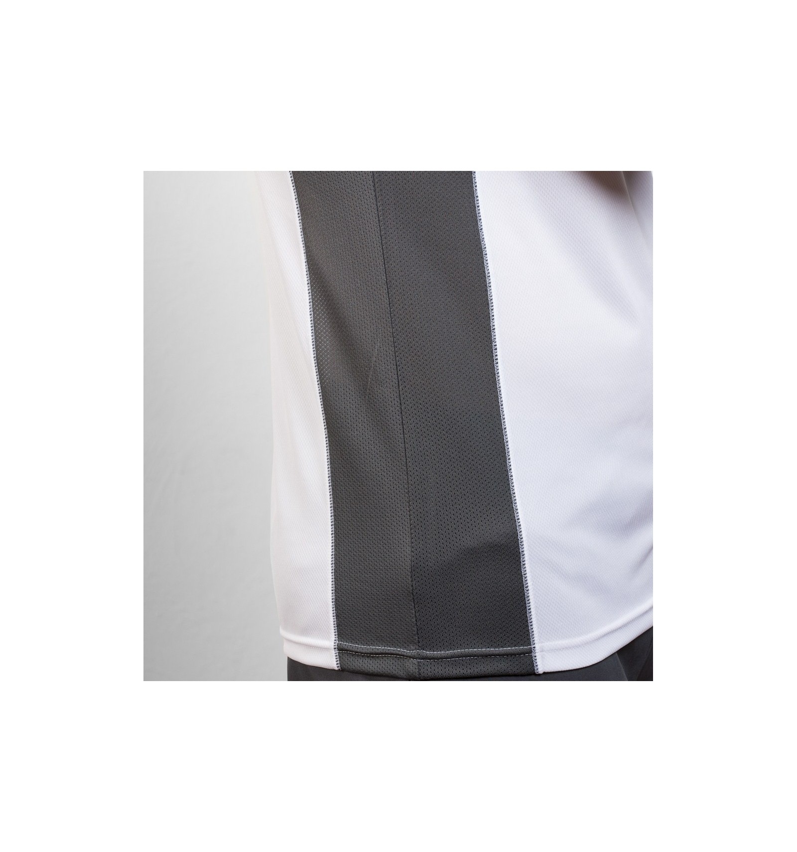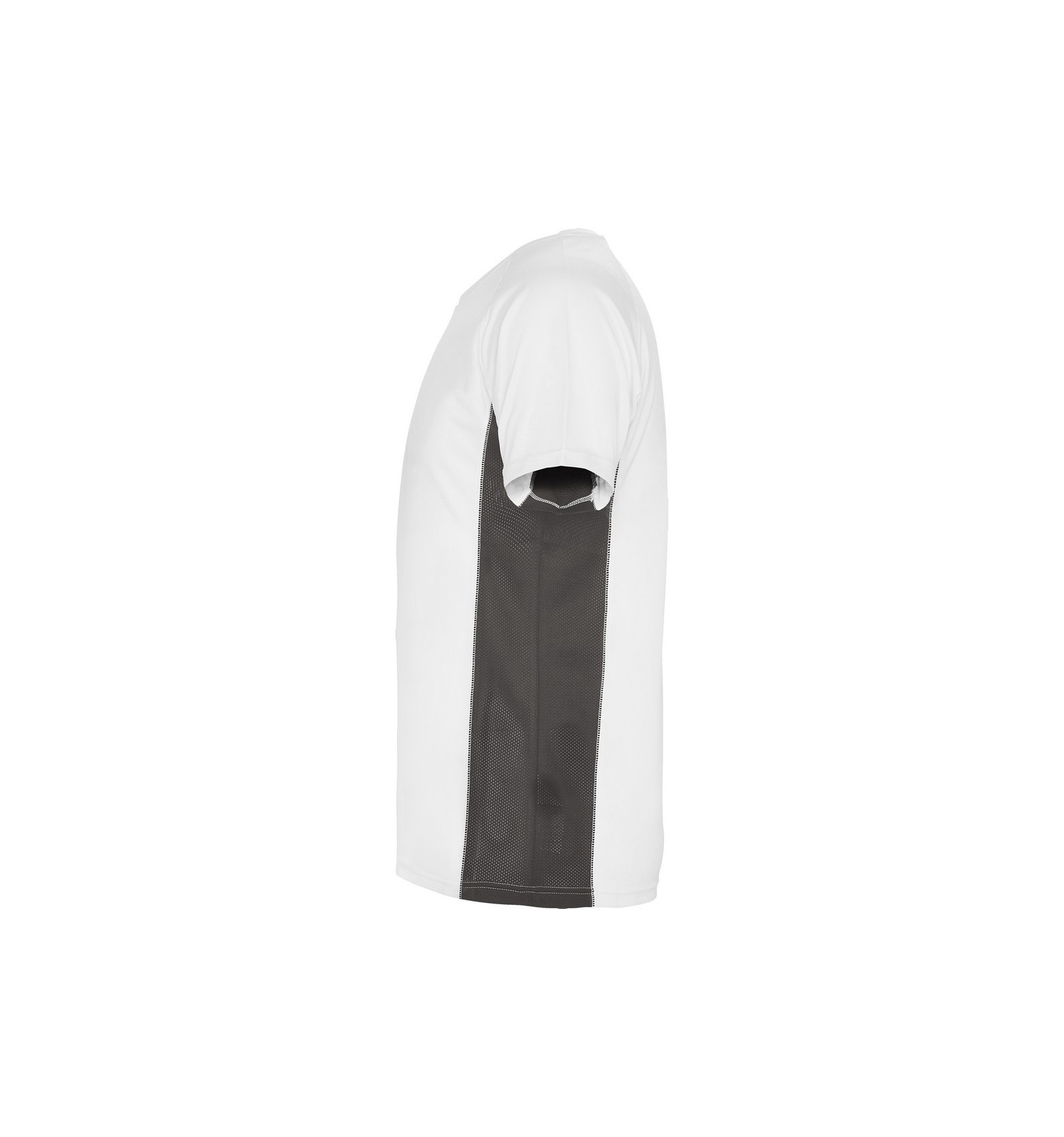 Tricou tehnic format din două tipuri de material de poliester, cu mânecă scurtă raglan. Material principal ochi de pasăre, iar parțile laterale și interiorul mânecii din material microperforat. Guler rotund cu bandă întărită pentru acoperirea cusăturilor la interior. Tricou din material confortabil ușor de adaptat pe corp.