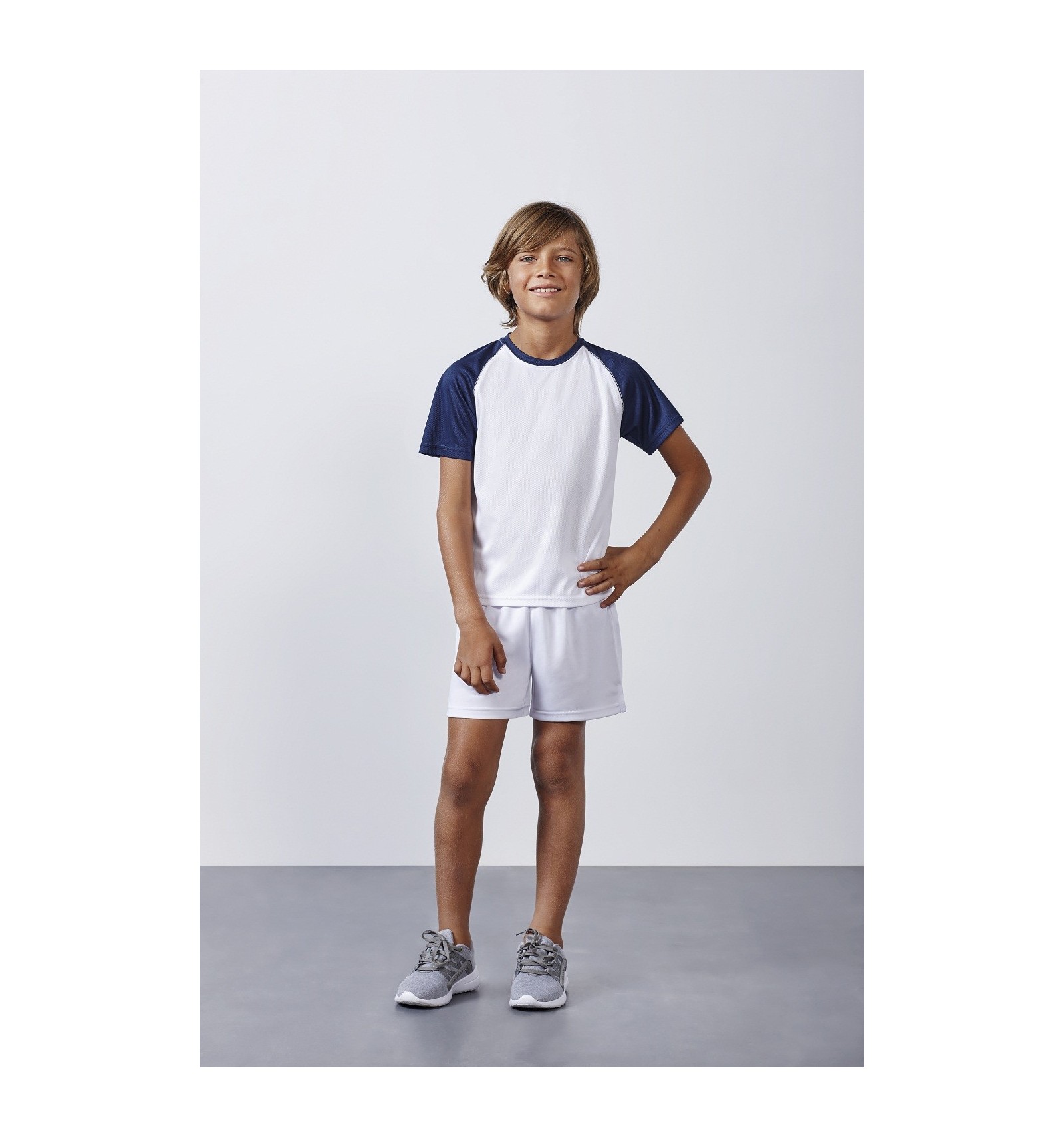 Tricou sport cu mânecă raglan în contrast de culoare. Guler rotund în contrast de culoare și cu bandă întărită pentru acoperirea cusăturilor la interior.