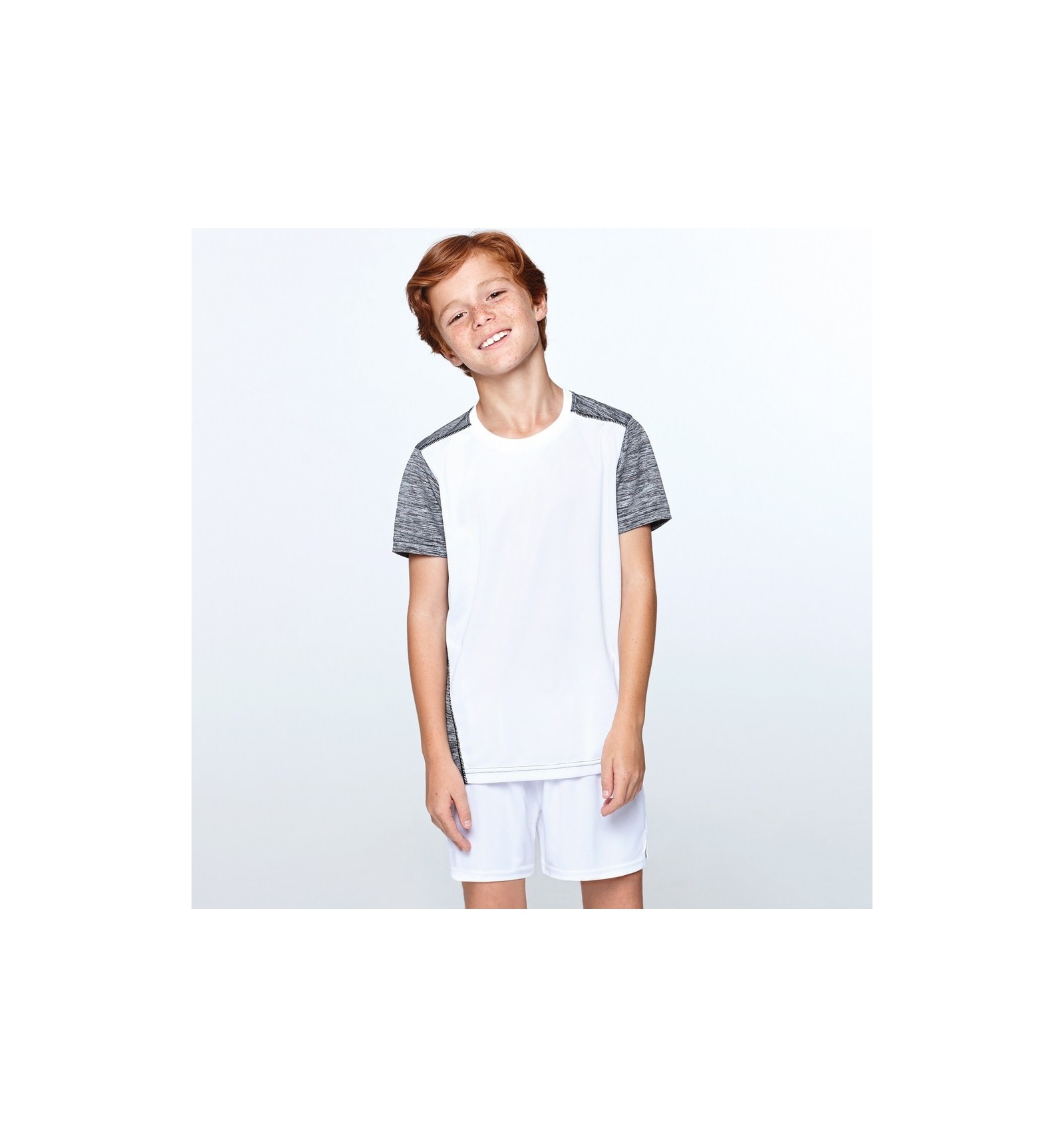 2.- Două tipuri de material din poliester combinat la umeri, spate și mâneci.