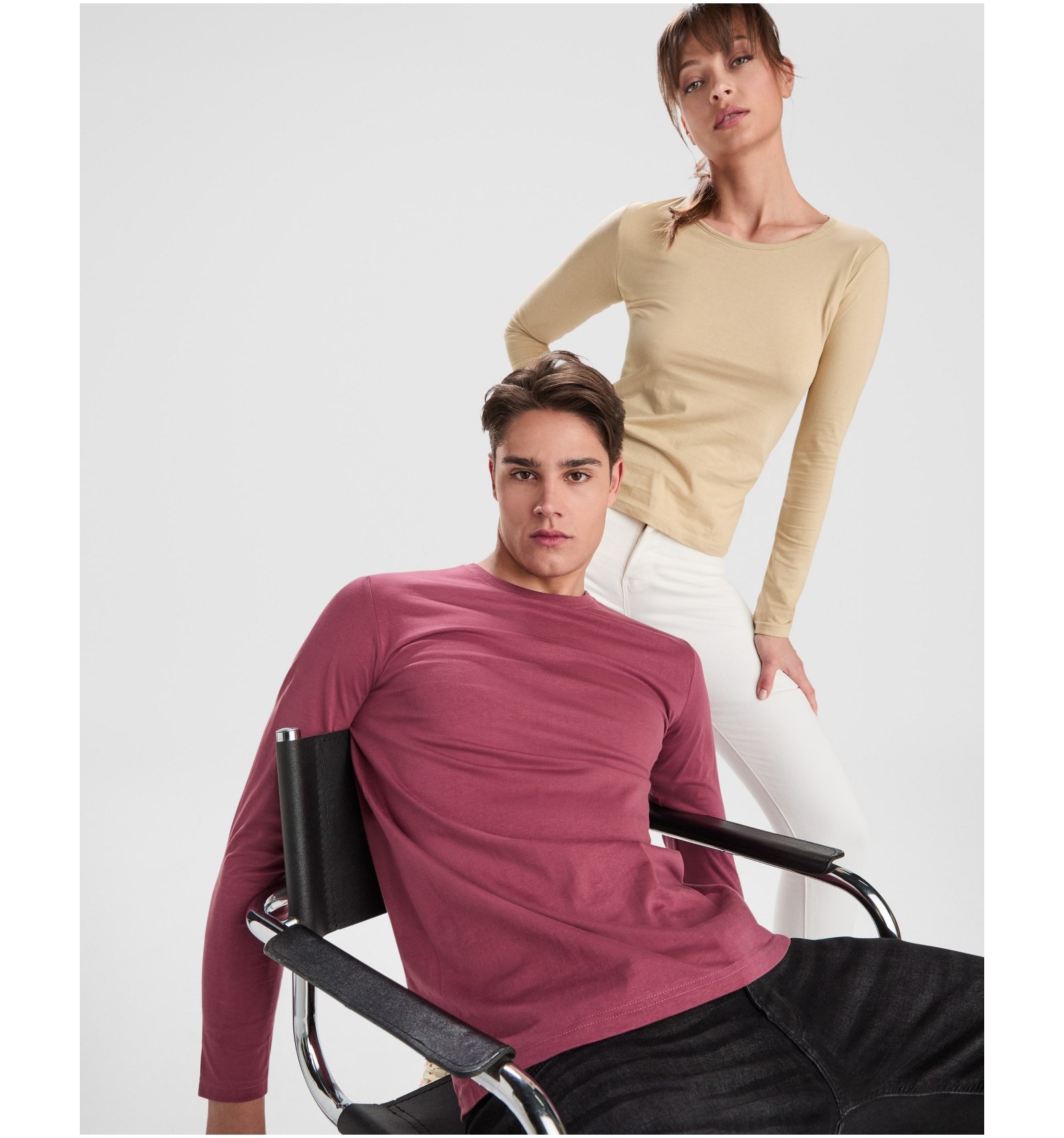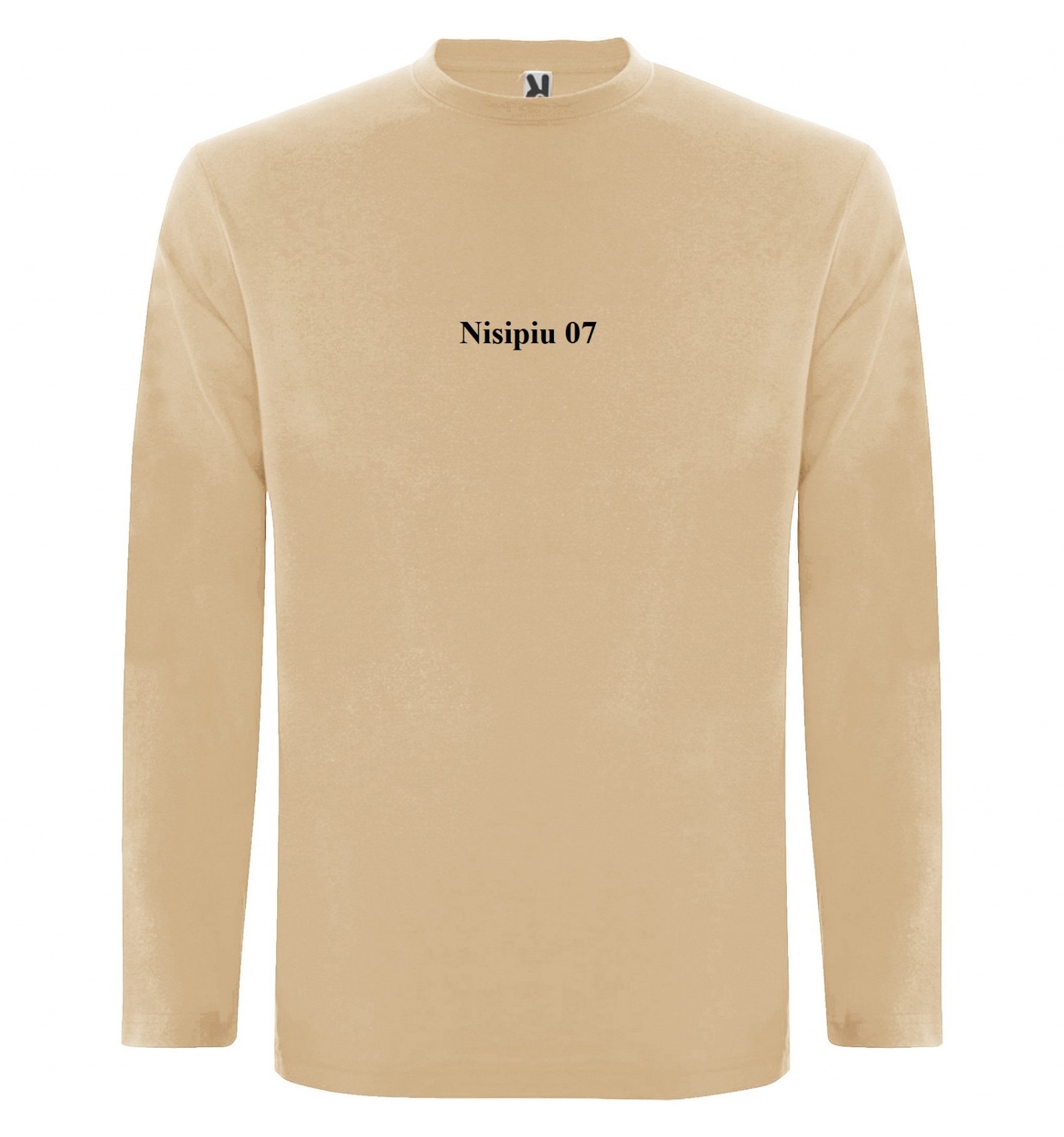 Tricou cu mânecă lungă și guler rotund de 4 straturi. Fără cusături laterale. Bandă întărită pentru acoperirea cusăturii la guler și umeri. Fără manșete.