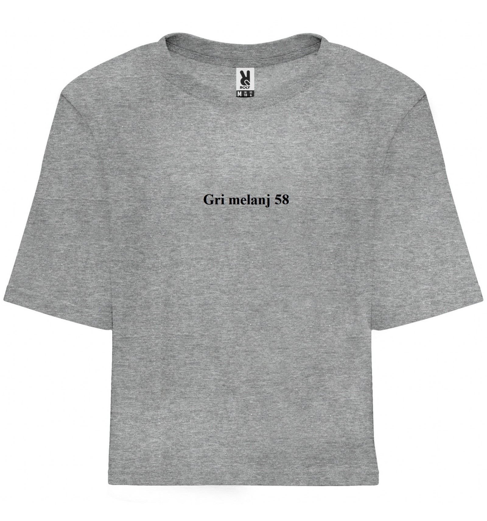 Tricou larg de damă cu mânecă scurtă. Guler rotund cu bordură lată în canalé 1x1. Bandă întărită pentru acoperirea cusăturilor de aceeași culoare.